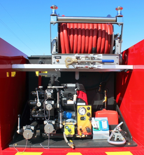 - Pump control panel with pump & engine controls, tank level gauges
